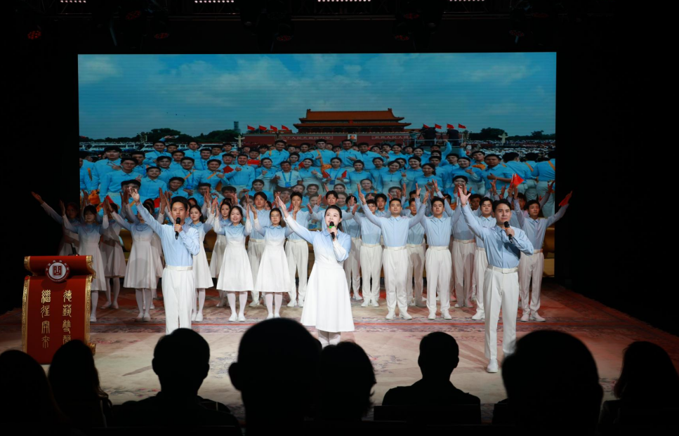 三尺讲台育桃李,一方氍毹传戏韵。活动在我的育人故事宣传片和马笑、张子旭、刘华三位老师与京昆系学生带来的情景朗诵《薪火赓续,戏韵丹心》中拉开帷幕。在展示环节,京昆系郑轶、表演系尹秋艳、导演系席凯、音乐系梁峰、戏文系安莹、舞美系宋旸、艺文系焉若文、附中米博、继教部秦英等九位教师,围绕“为党育人、为国育才——大力弘扬教育家精神 铸魂育人 加快建设教育强国首善之区”主题,分享了以习近平总书记重要回信精神为根本遵循,践行教育家精神,奋力书写戏曲教育高质量发展崭新篇章的生动感人故事,在场师生深受触动,不时报以热烈掌声。导演系组织员兼辅导员杨程怡与参加纪念中国人民抗日战争暨世界反法西斯战争胜利80周年大会广场合唱的学生共同带来情景故事《成长之光》,并唱响《保卫黄河》《歌唱祖国》。
